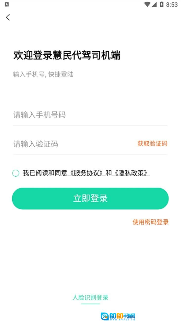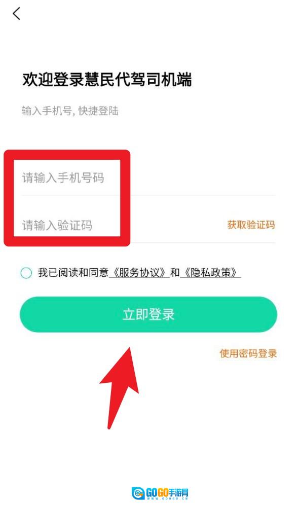 2. 已注册用户在登录界面输入手机号与验证码,勾选同意协议后点击绿色按钮立即登录。
