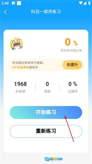 2、在顺序练习页面,点击开始练习按钮,即可进入科目一答题页面。