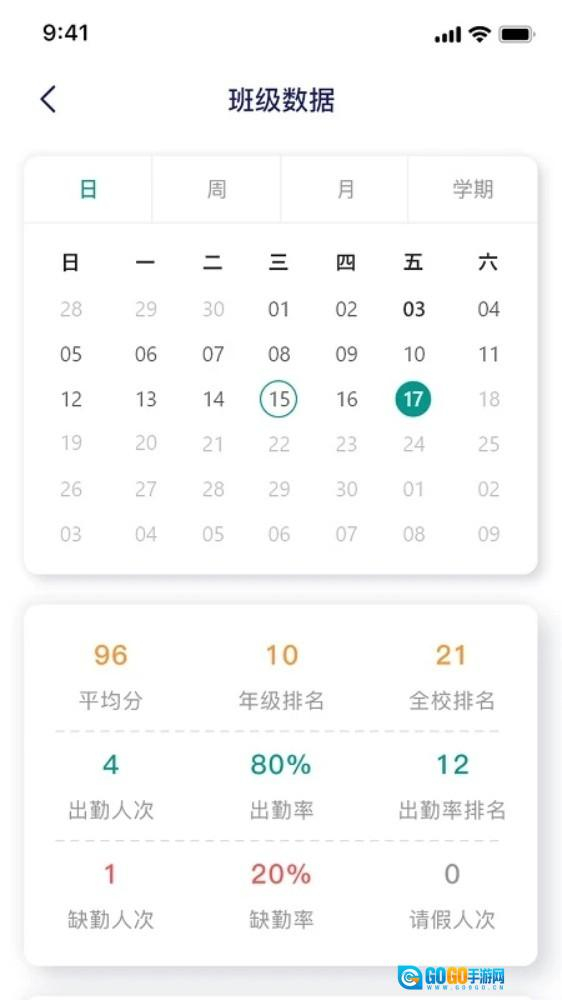 2、数据统计:支持查看班级详情、学生分数、每日出勤、活动表现等多维度的统计分析数据。