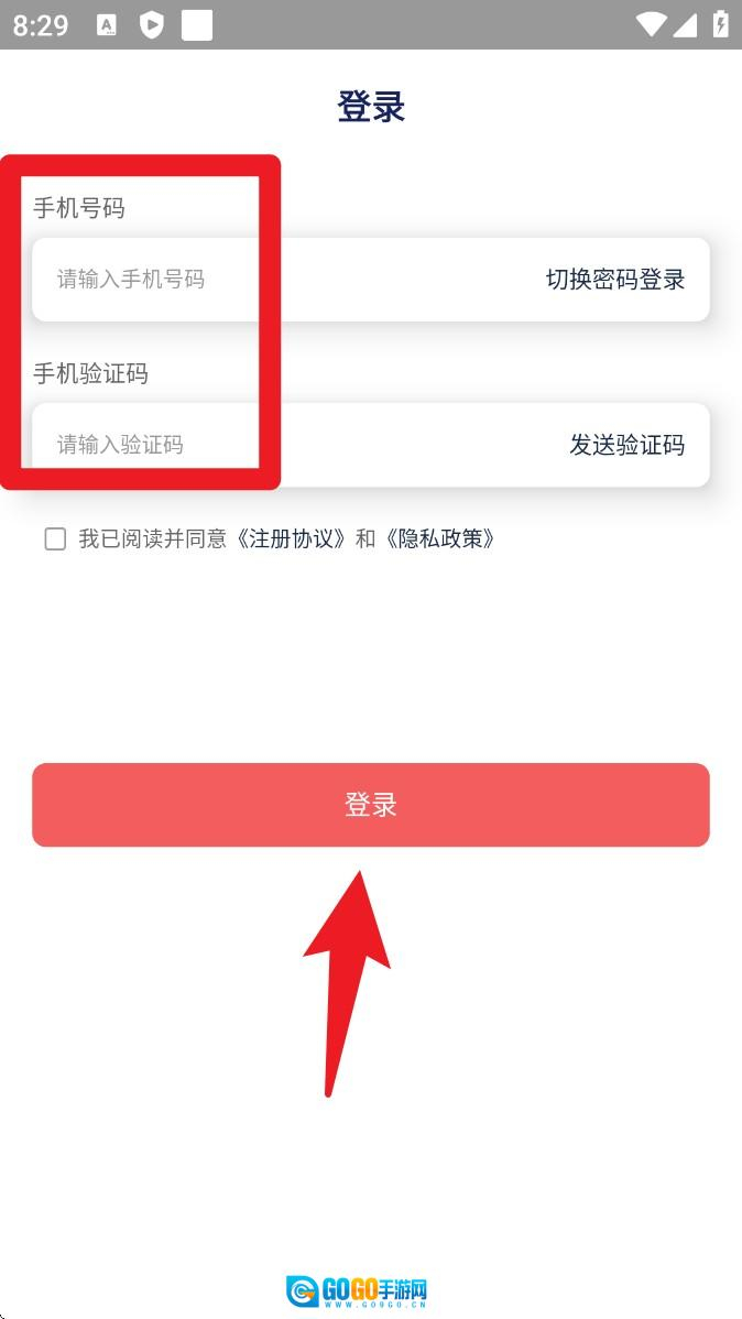 1. 打开后,在手机号输入框填写您的手机号码,接着在验证码输入框输入收到的短信验证码,最后点击下方的登录按钮即可完成登录操作。