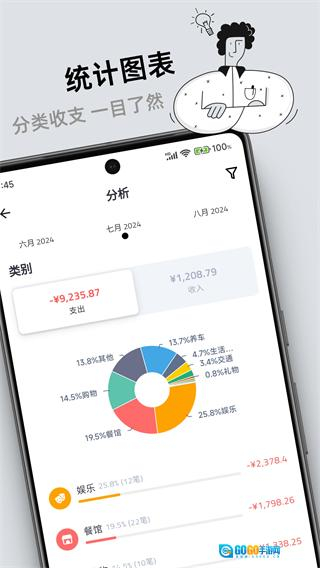 图表化的收支分析打破了纯数字记账的枯燥感,让消费去向一目了然,用户可直观发现消费漏洞,进而针对性调整支出结构,提升资金使用效率。