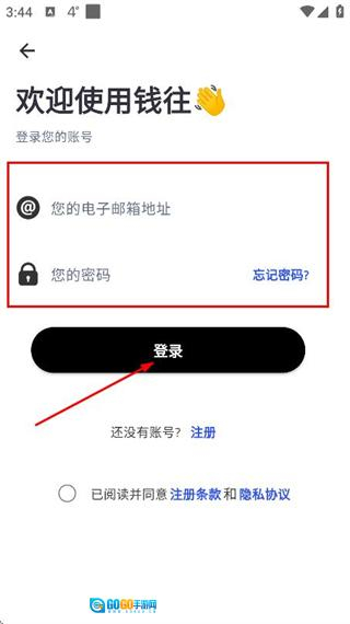 3、在登录页面填写邮箱和密码,勾选协议后,点击登录完成账号登录操作。