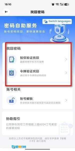 如果不记得账号密码,在首页点击“忘记密码”,然后选择找回密码方式,支持短信和令牌验证;