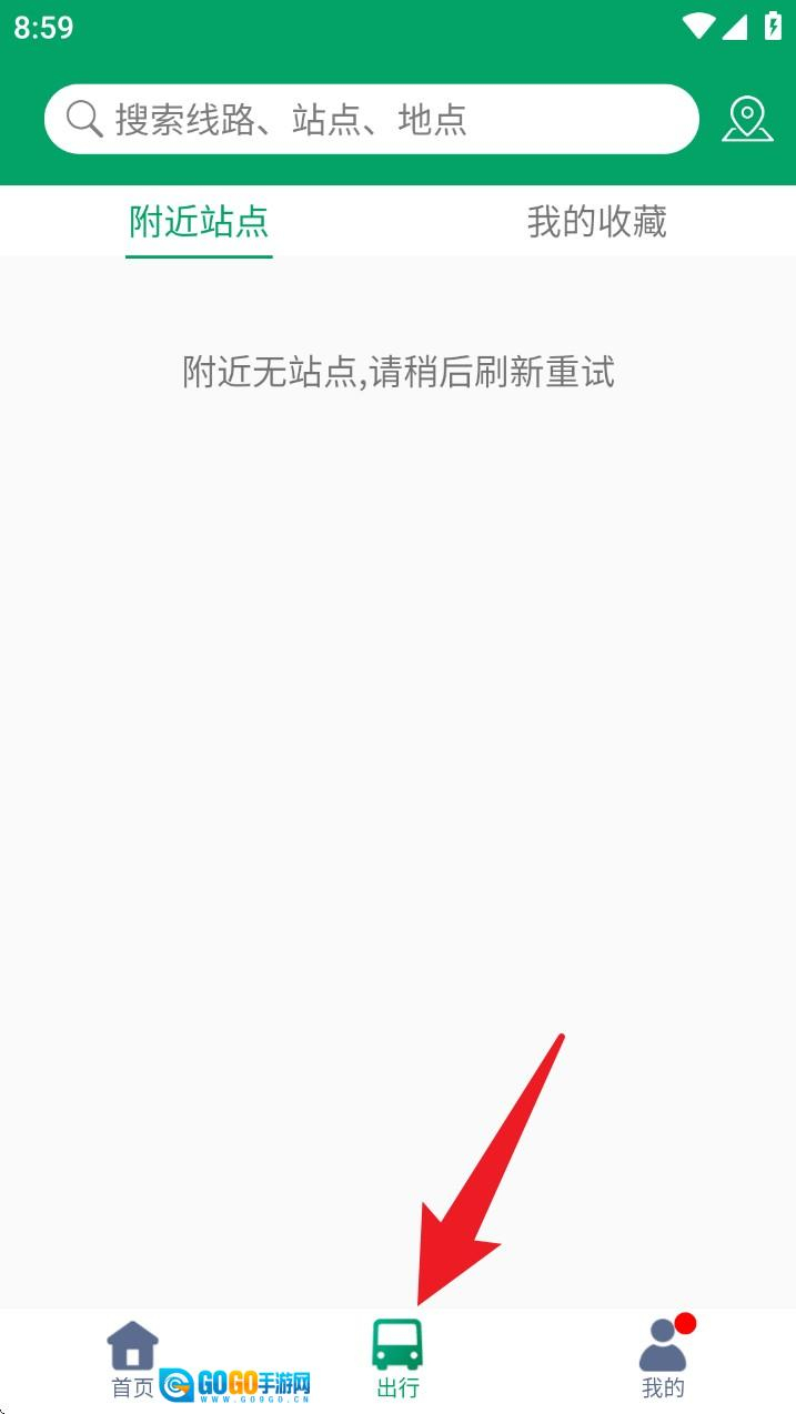 3. 进入附近站点模块后,你可以查看离当前位置较近的公交站点,帮助你规划出行路线。