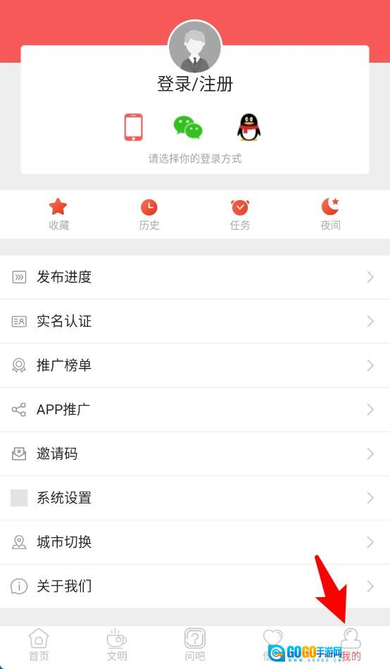 5、用户可在我的页面进行账号登录注册操作,还能查看收藏内容、历史记录、任务信息以及系统设置等相关内容。