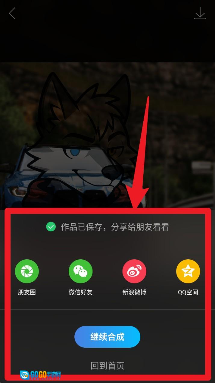 4. 编辑结束后点击右上角的保存按钮,页面会提示作品已保存,此时可以一键分享至微信好友、微博、朋友圈等社交平台。