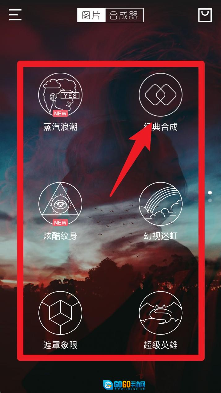 1. 打开App首页后,点击“经典合成”进入对应的功能模块,在这里可以浏览其他不同的视觉风格类型,从中挑选出契合创作主题的合成方式。