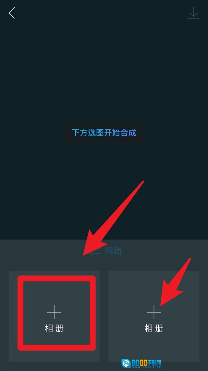 2. 进入合成界面后,点击底部的相册导入图片,要选择两张素材图,一张作为背景,另一张作为前景,系统会自动识别它们的图层位置。