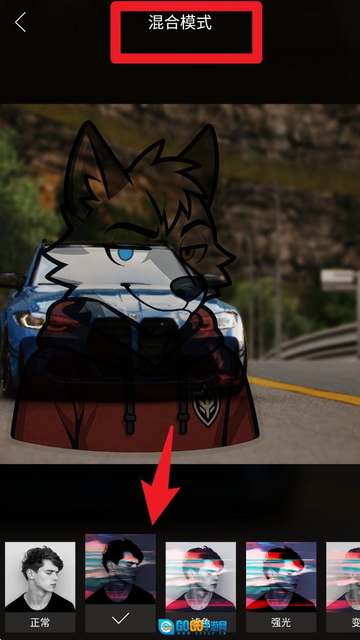 3. 添加图片后可进入混合模式设置界面,通过滑动操作选择滤色、叠加等不同模式,从而快速生成富有氛围感的视觉融合效果。