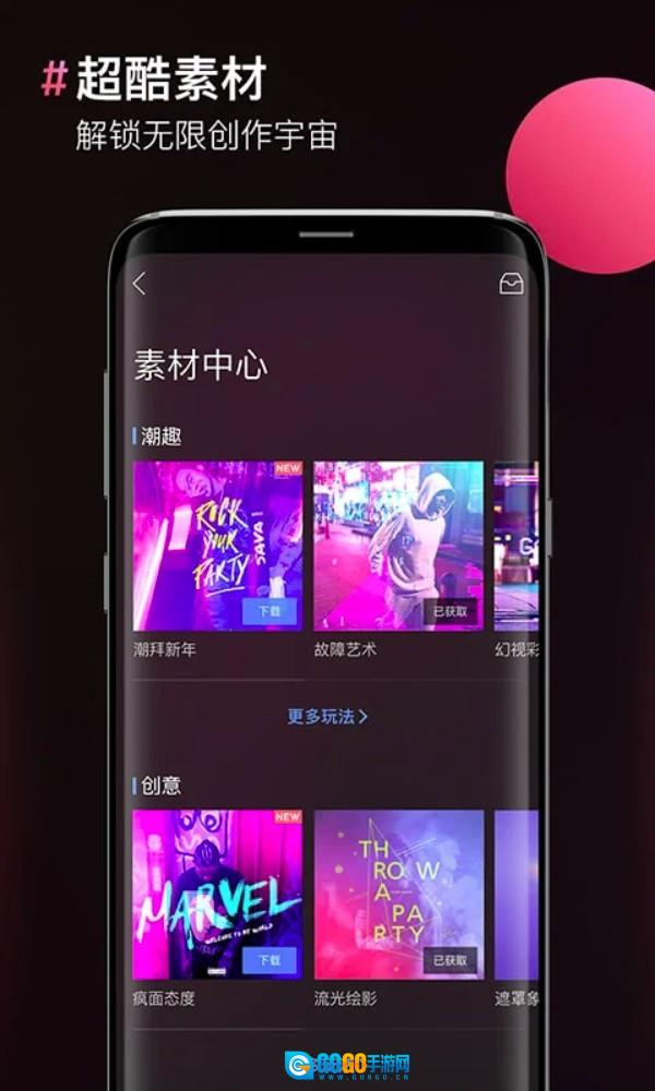 1、个性创作:平台收录数十款原创潮流风格的素材资源,用户可根据需求自由组合搭配,无需复杂操作即可轻松打造出独具个人特色的视觉作品。