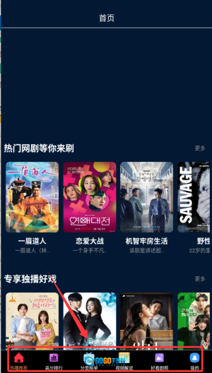 1、可以通过首页推荐或者分类导航来浏览影视库,进入作品详情页后,查看评分、简介以及观众评价,之后就可以开始观看了。