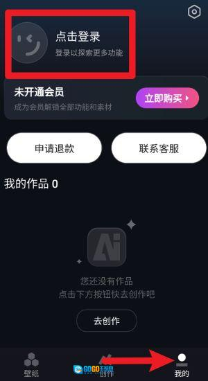 1、进入“我的”界面即可执行登录操作,登录成功后能够使用保存作品、联系客服以及申请退款等功能。