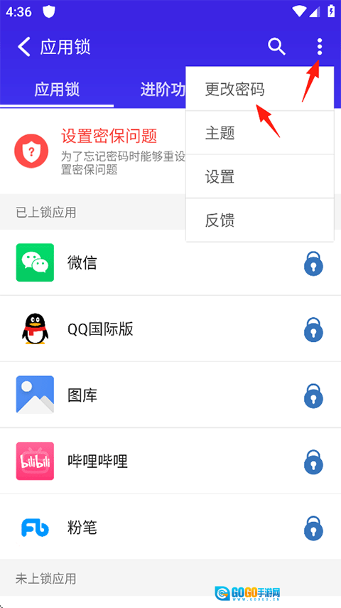2、设置应用锁时,可选择手势或数字密码作为解锁方式,建议设置复杂度较高且不易被的密码。