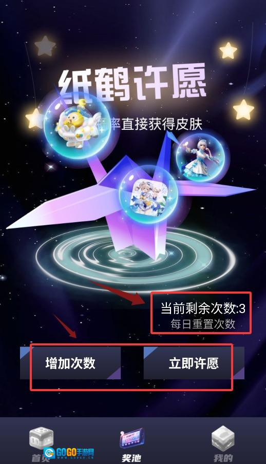 3、奖池界面会显示当前剩余的可用次数,点击“增加次数”按钮即可立即发起许愿操作。