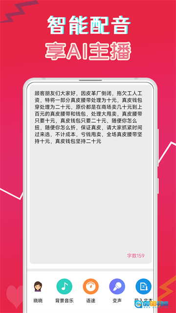 2、真人配音:由专业声优提供专属服务,可满足广告、视频、地摊叫卖等各类配音需求。