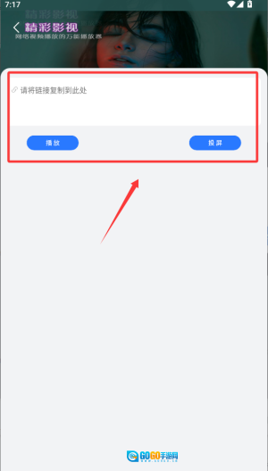 4、直接将链接粘贴至指定位置,然后选择直接播放或是投屏。