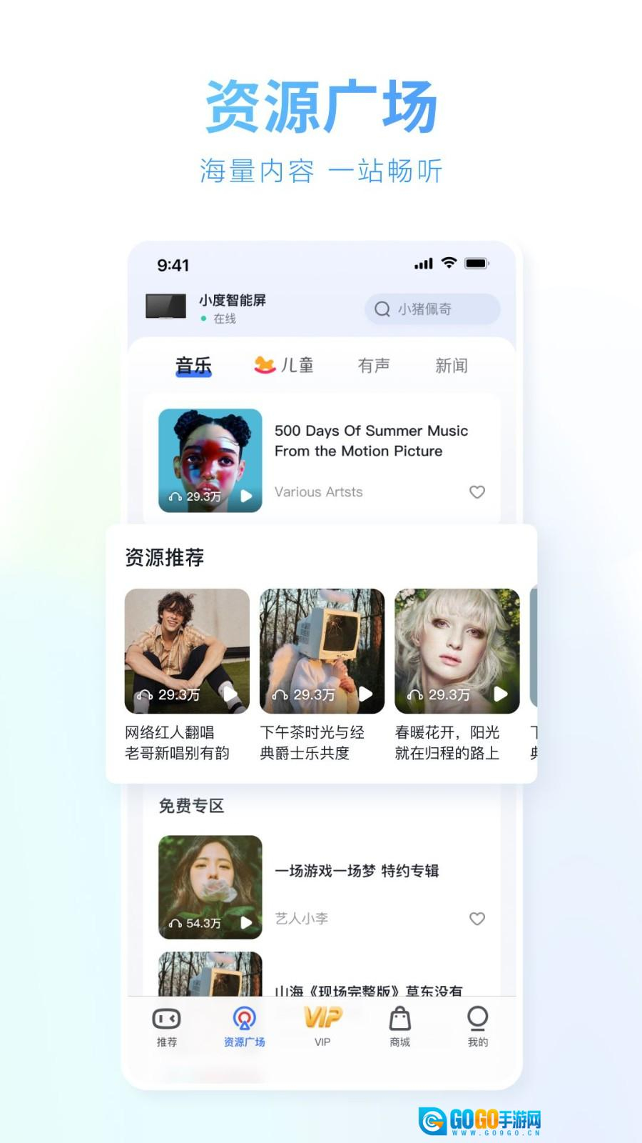 3、在资源广场里,你可以浏览音乐、有声读物之类的内容,只要点击封面就能播放,轻松畅享视听娱乐的乐趣。