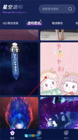 1、软件安装完成后,打开应用进入首页,找到并选择“透明壁纸”这一选项;