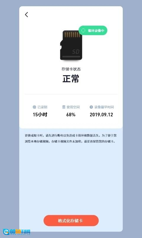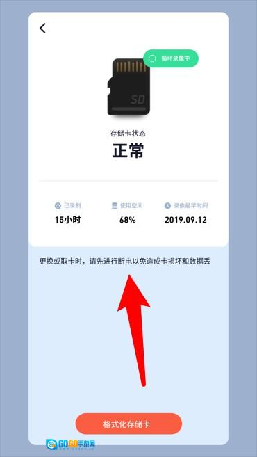 5、在储存卡状态界面中,能够查看其剩余空间以及使用情况;若要更换储存卡,需先断开电源,以避免资料损坏。