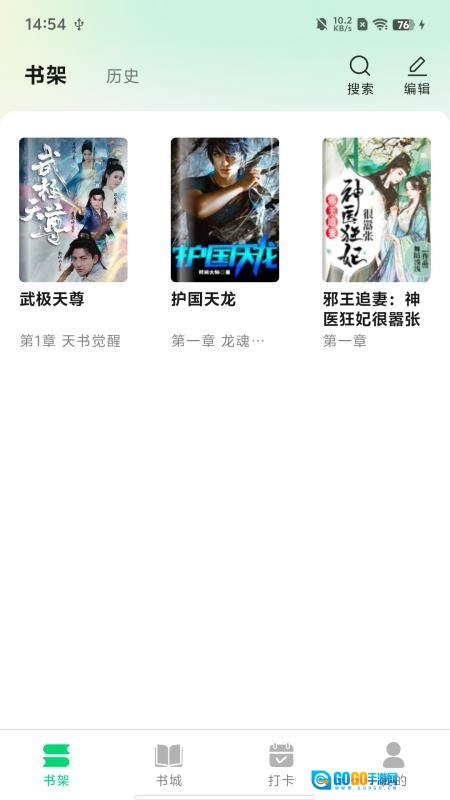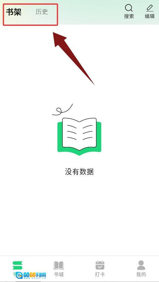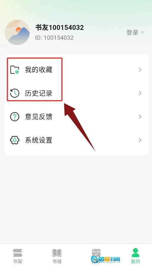 3、书架界面可管理已收藏的图书,并查看个人阅读历史。
