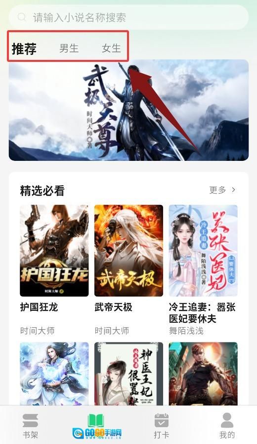 2、书城界面设有推荐、男生、女生等分类,便于查找书籍。