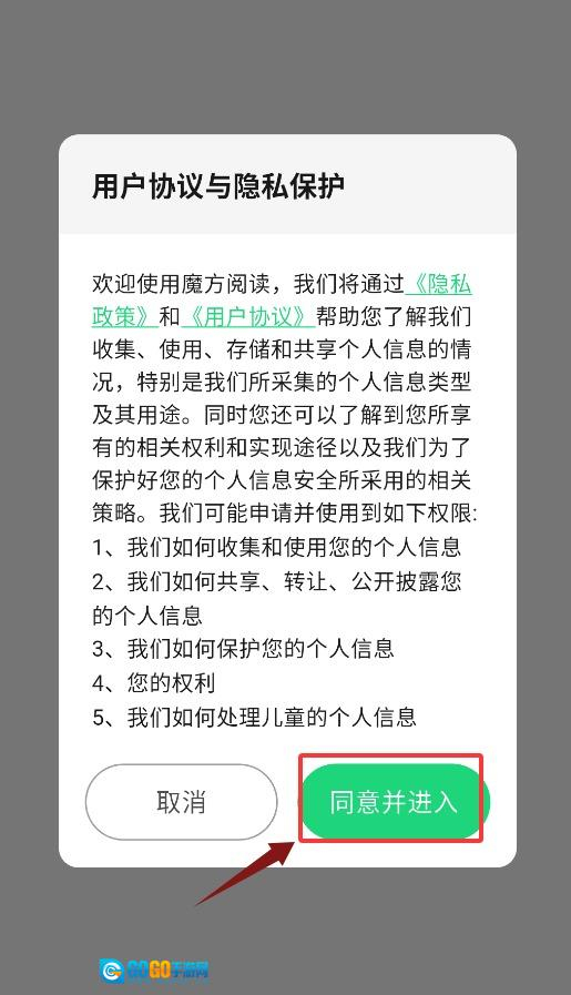 1、首次启动应用需点击确认协议弹窗,同意后方可进入主界面。
