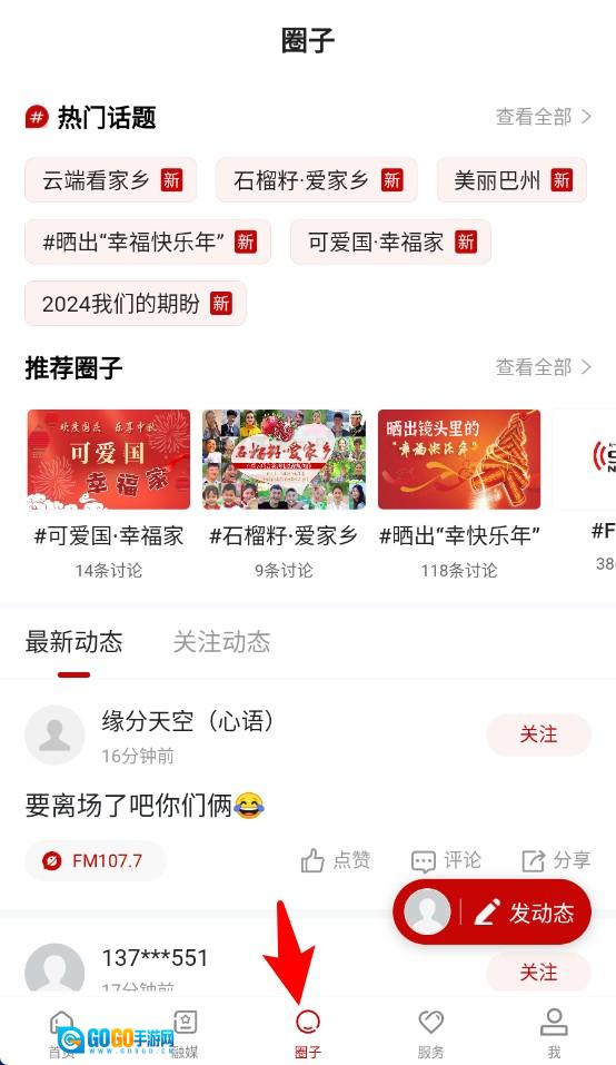 3、圈子模块汇聚热门话题与本地互动社群,用户能发布动态,参与社区交流互动。