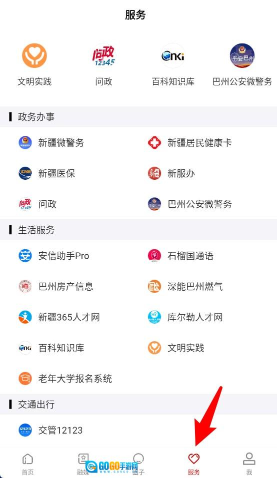 4、服务页面融合了政务服务与生活办事功能,包含医保、燃气、就业等各类便民服务入口。