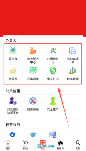 2、政务服务模块,该应用设有政务办理的功能选项,便于居民在线处理相关事务,既能节省时间和精力,也能让政务服务更高效。