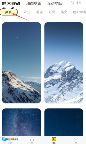 3、在壁纸库选择风景分类,浏览静态壁纸。