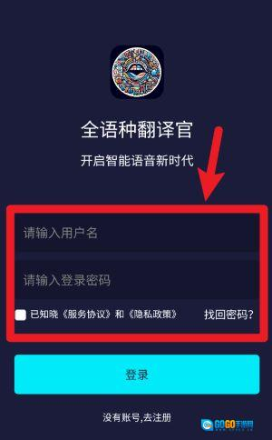 1、启动全语种翻译官后,需先在登录界面输入用户名和密码,并且勾选相关协议,之后才能点击登录按钮进行使用。