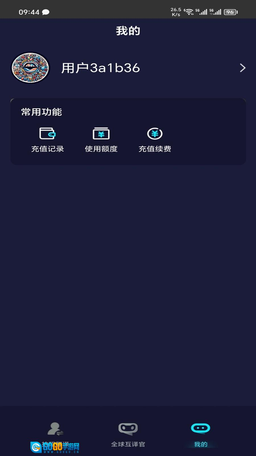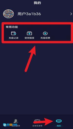 3、点击“我的”页面,可查看当前账号信息、充值记录、使用额度及续费服务等相关功能。