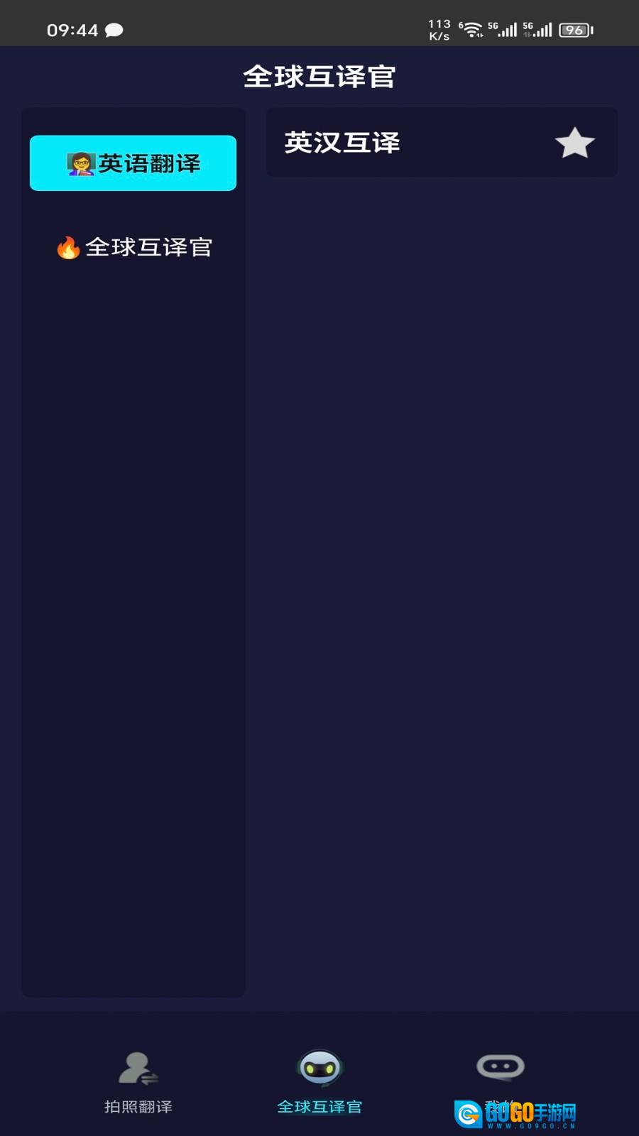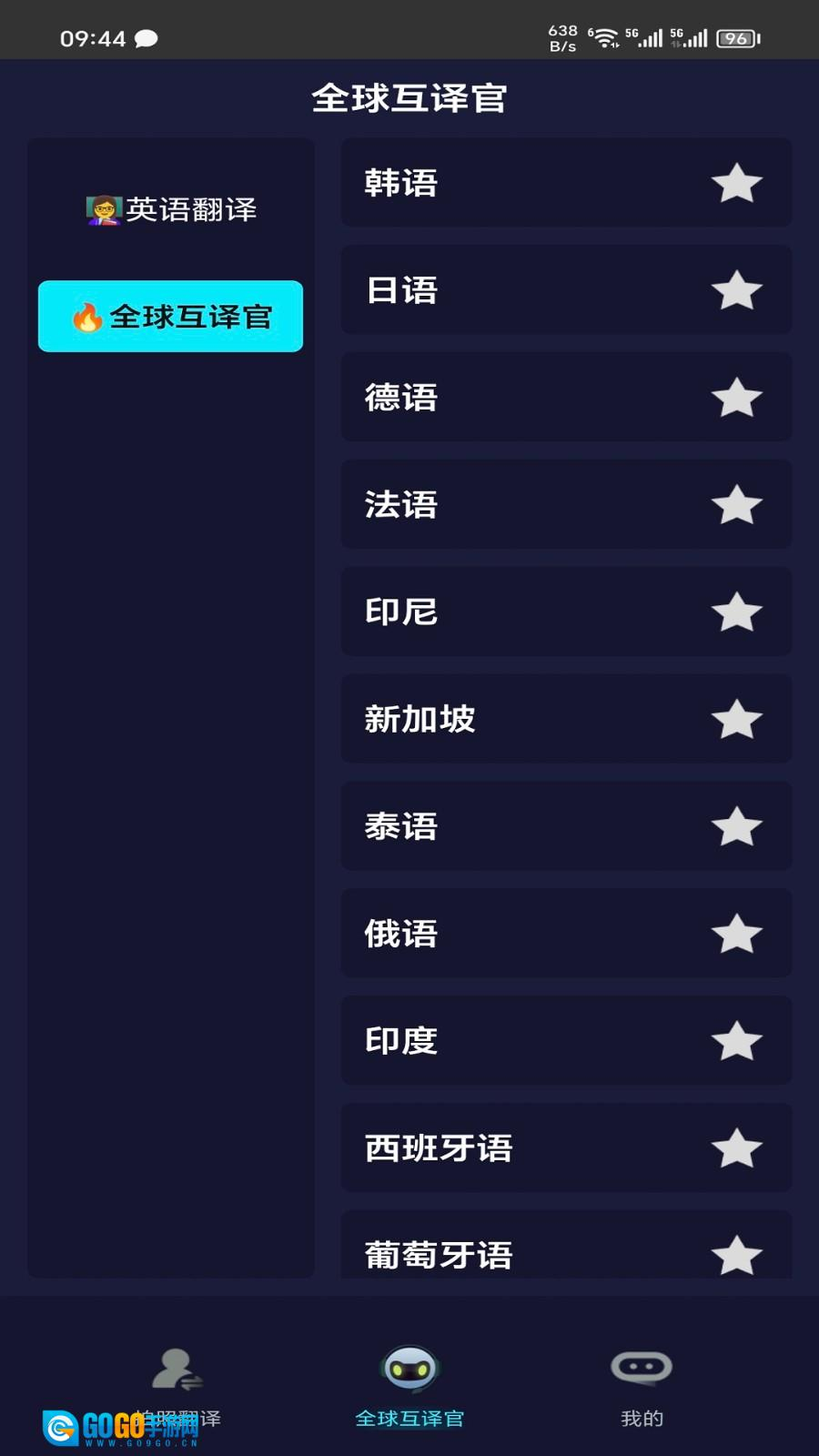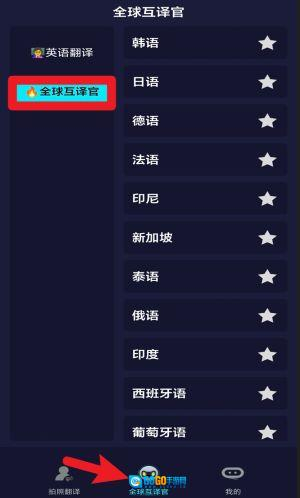 2、在全球互译官页面能够挑选需要的翻译语言,涵盖英、韩、日、法、西班牙语等多个国家的语言。
