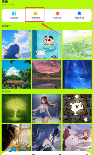 2、在功能界面,点击红框标注的手绘壁纸按钮。