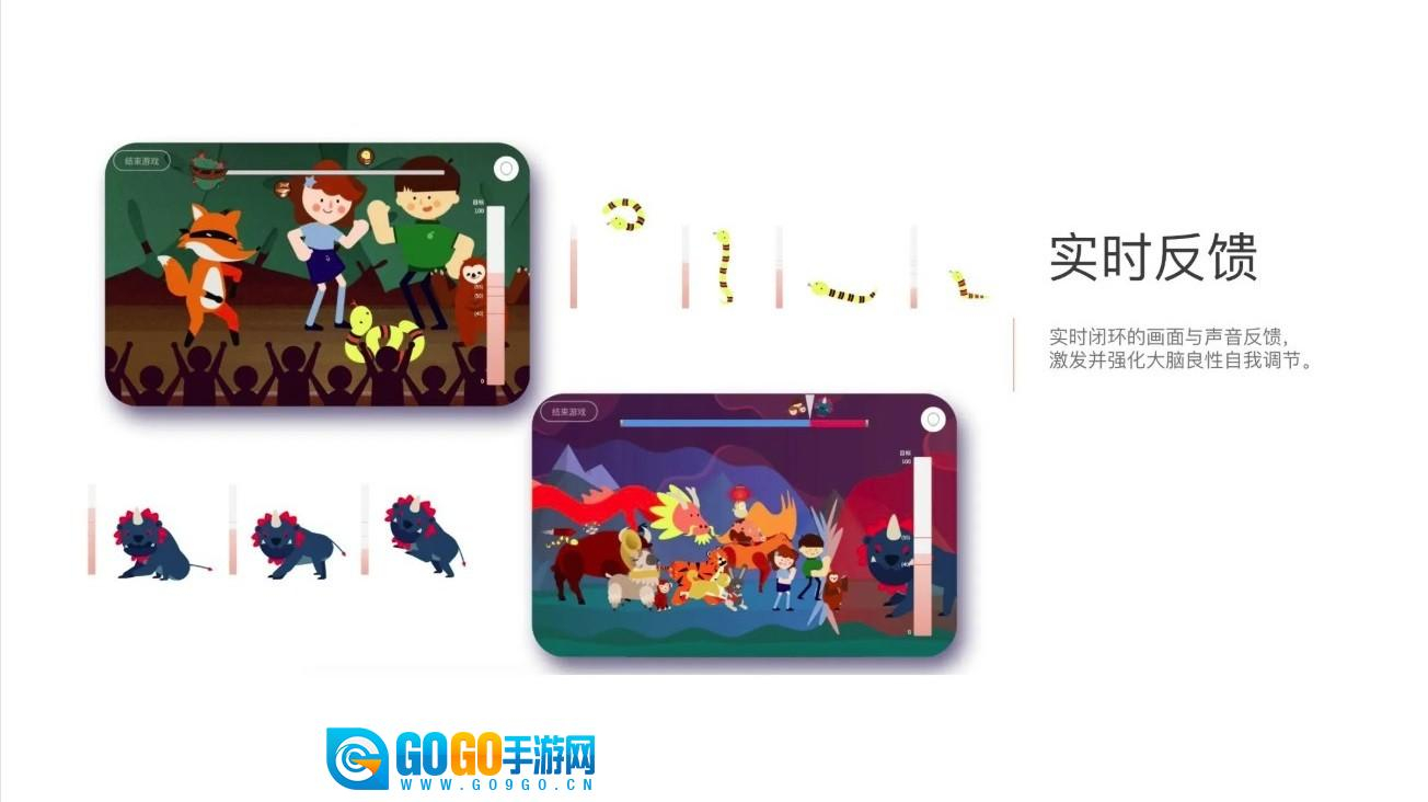 3. 游戏过程中会同步显示脑波反馈柱状图,并通过角色互动与场景变化进行实时反馈,孩子能根据视觉与听觉提示调整专注力与情绪状态。