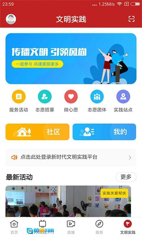 5、文明实践平台呈现志愿活动、课程、社区服务等内容,倡导共同建设文明乡村。