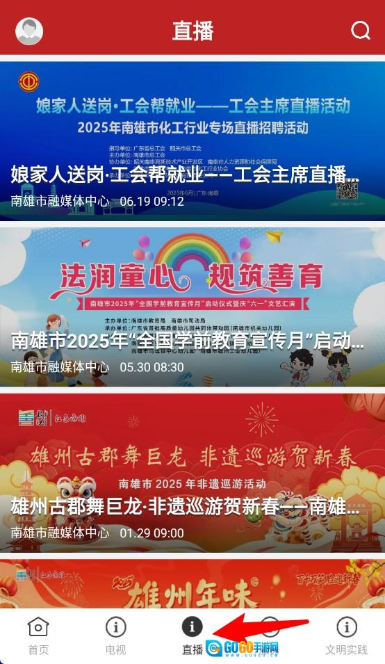 3、直播页面整合了南雄当地的各类直播活动,用户既能实时观看直播内容,也能随时查看活动的回放视频。