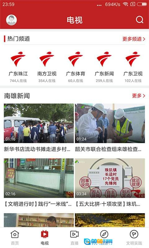 2、电视模块具备广东省各主流频道的直播与回看功能,方便用户轻松观看本地电视节目。