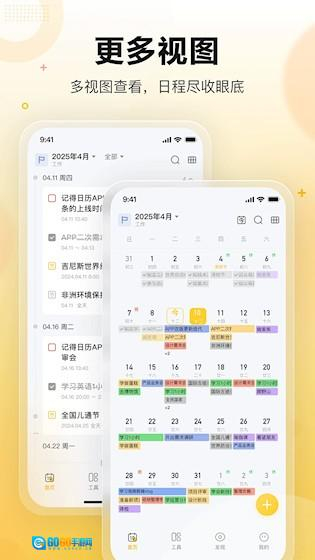 2、多种视图切换:提供日、周、月三种时间展示方式,便于用户根据需要灵活查看整体或细节安排。