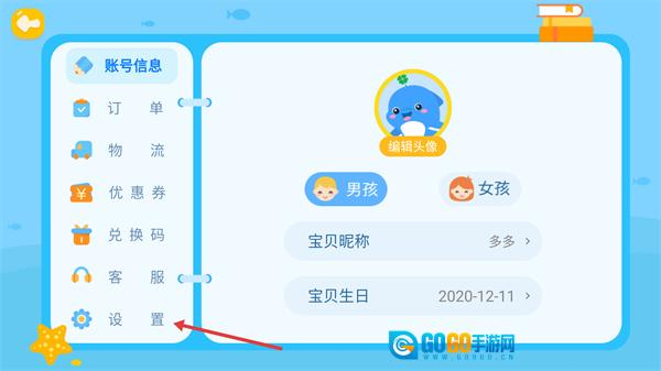 3、进入包含【账号信息】【订单】等选项的界面后,找到【设置】的入口。