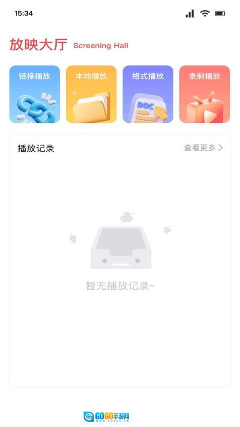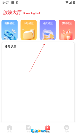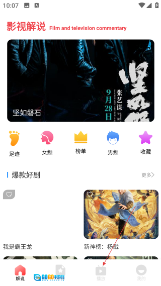 1、在解说页面,点击底部的【播放】按钮,即可进入放映大厅的功能界面。