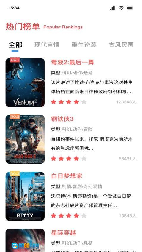 4、打造详尽的影视榜单,通过分类方式清晰展示影视资源,让日常观影更畅快,既高效又便捷。