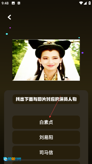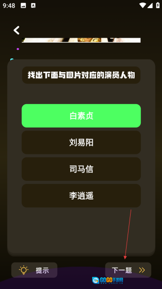 4、在作答完成后,点击【下一题】按钮,即可进入下一个看图猜演员的题目。