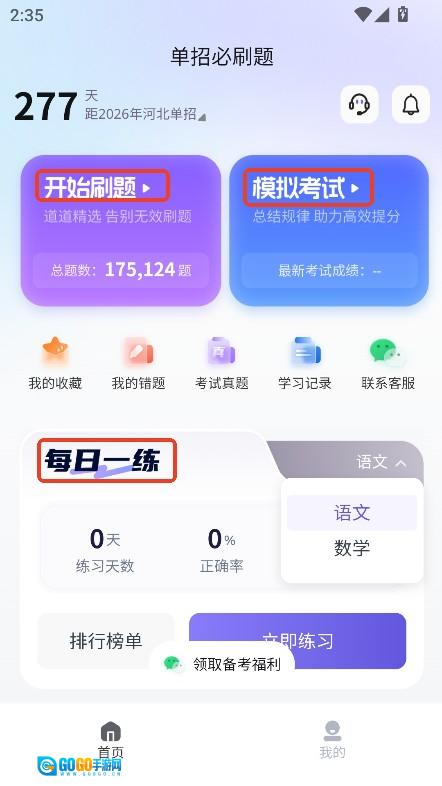 1、首页设置多个在线练习功能入口,方便用户快速找到所需服务;
