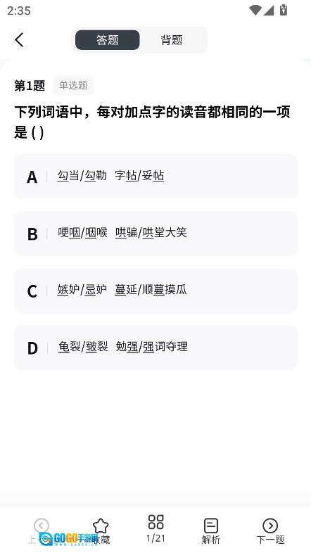 4、支持在线做题、背题,还能收藏试题与解析,便于后续复习。