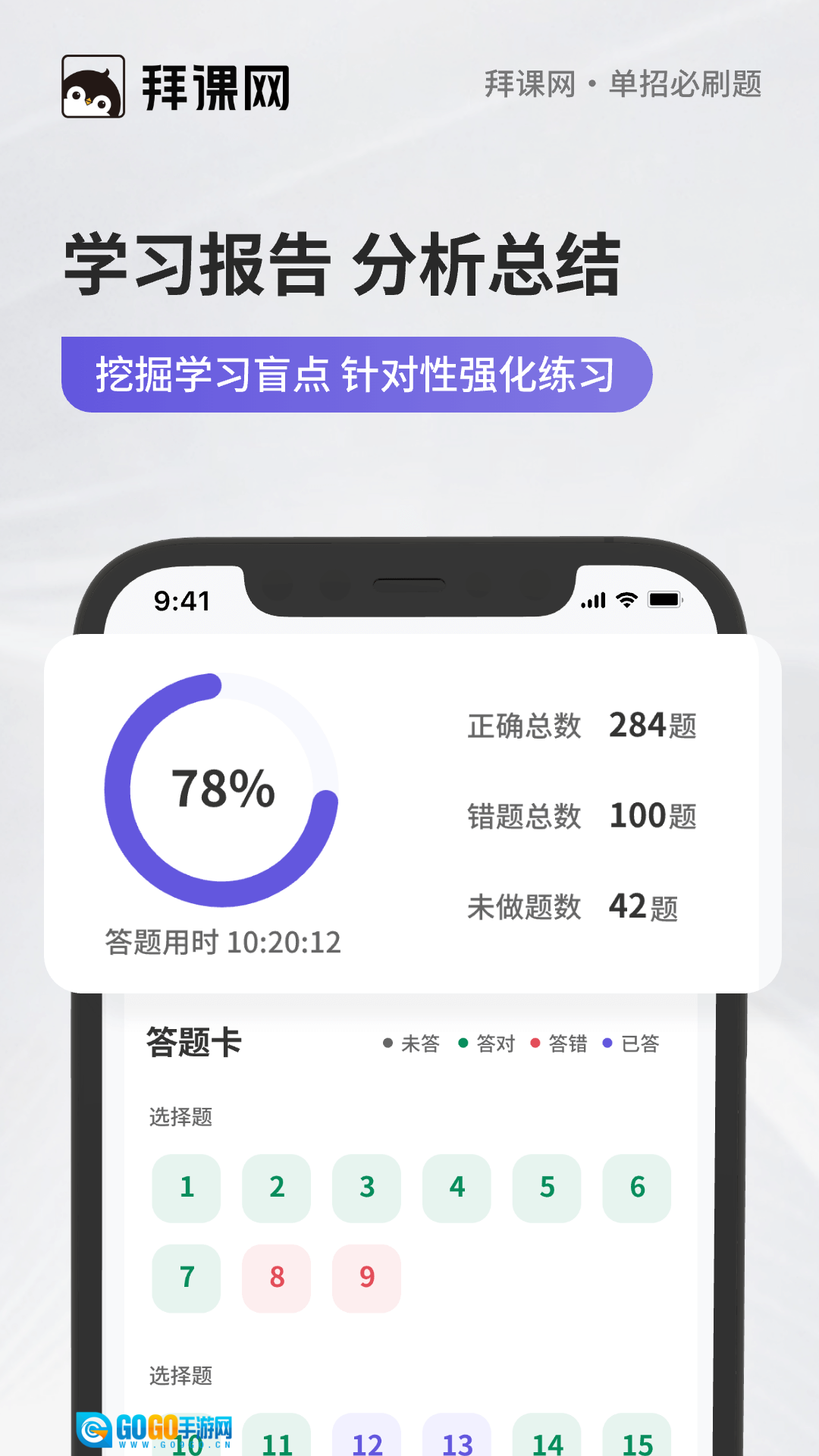 4、数据智能分析:系统会自动对刷题数据进行统计,并生成详尽的学习报告,让学习者的薄弱环节一目了然。