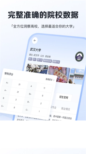 3、系统化的学习规划:结合用户信息和成绩分析,平台能够帮助用户制定适合自己的学习与填报策略,提升目标明确性。