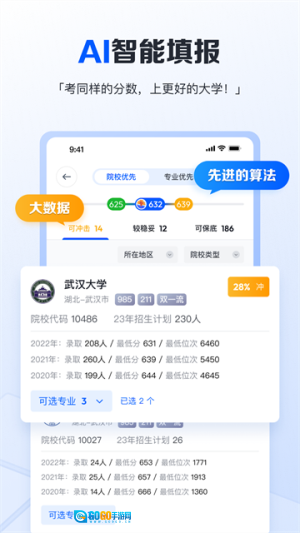 2、高校填报建议:根据用户的学情和兴趣,平台能够自动生成填报建议,助力用户科学合理地选择高校。