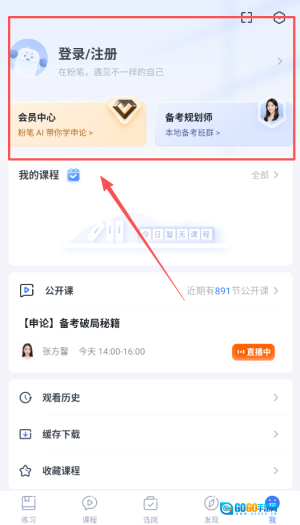 1、首先,并安装粉笔申论App,注册账号后登陆,可以进入主界面,快速了解各功能模块。