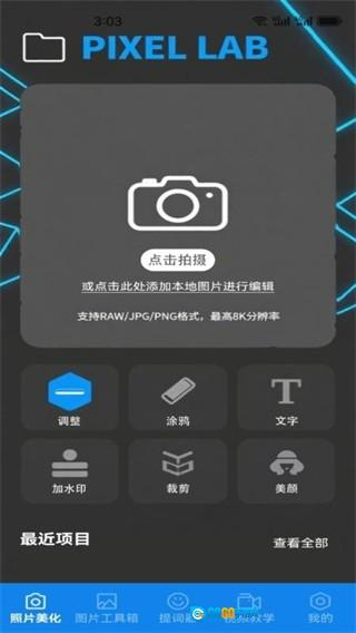 3、软件首页清晰呈现图片拍摄与美化功能,用户能够直接点击运用。